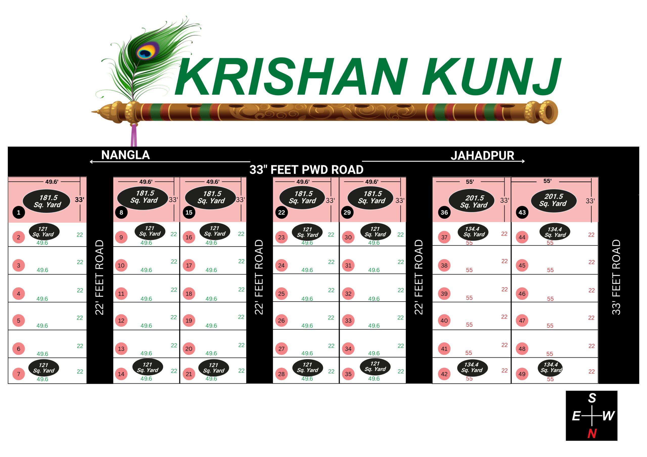 Welcome to Krishan Kunj, a prime gated township offering an excellent opportunity to own a plot in a well-planned and secure environment. Spread across 2.5 acres of land, Krishan Kunj features 45 residential plots, with sizes ranging from 121 to 201 square yards. The project is DTCP Haryana-approved, ensuring all necessary approvals. The plots are located in Nangla, Dadri-toye, opposite Reliance MET City, Sector 1, Jhajjar, Haryana.